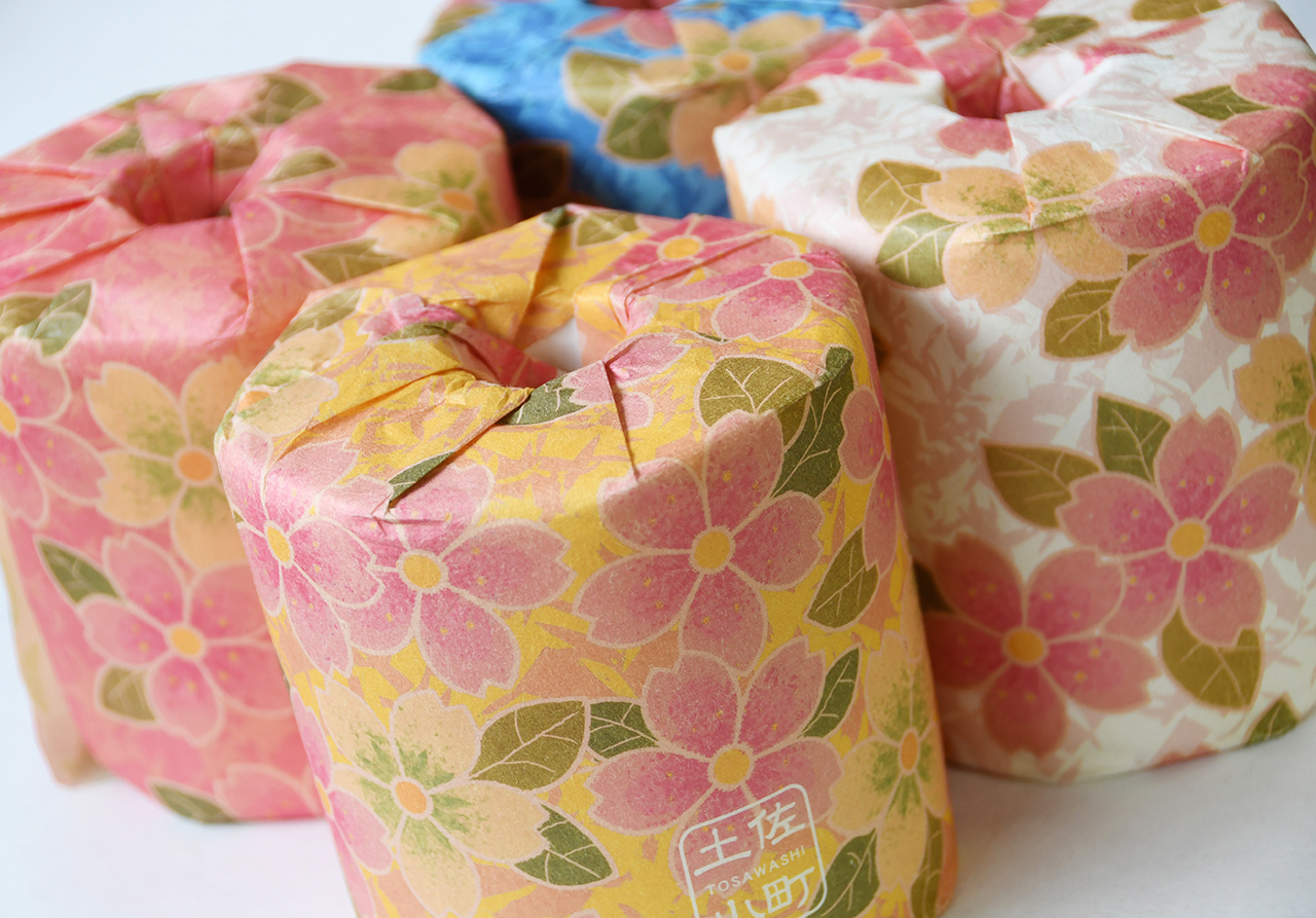 土佐和紙の優しい感触が桜を引き立てた品のあるトイレットペッパーです。普段のトイレを少しだけ華やかに。贈り物としても喜ばれる一品です。